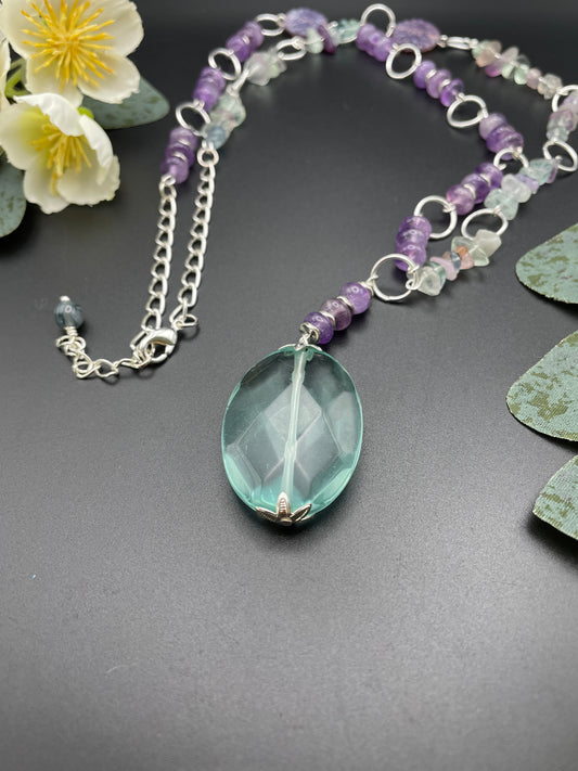 Aqua Quartz and Fluorite Necklace