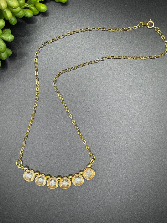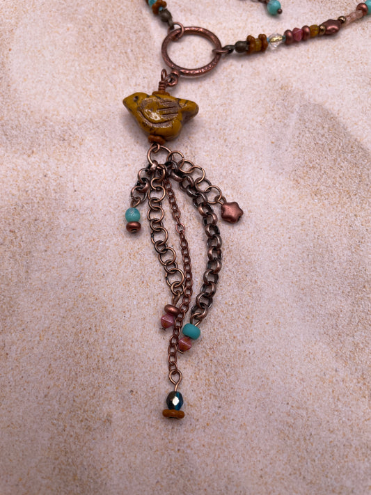 Czech Glass Carved Bird in Mustard Yellow Bronze Tassel Necklace Set