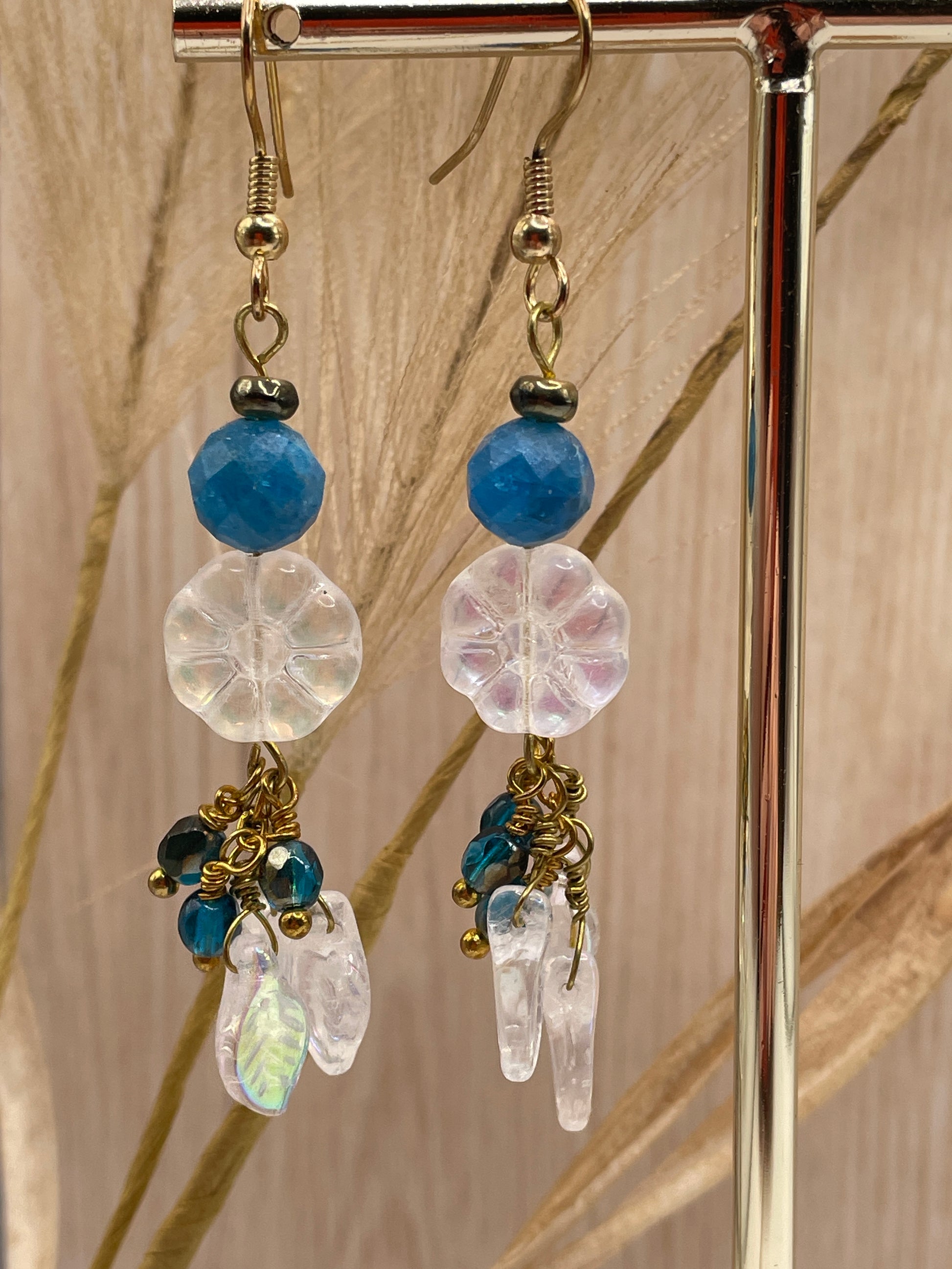 Add some playful shine to your outfit with these AB Daisy Tassel Earrings! The Czech glass daisy and eucalyptus leaf, along with the blue apatite and fire polish accents, make for a beautifully unique and quirky design. (Plus, the crystal AB adds an extra touch of sparkle!)