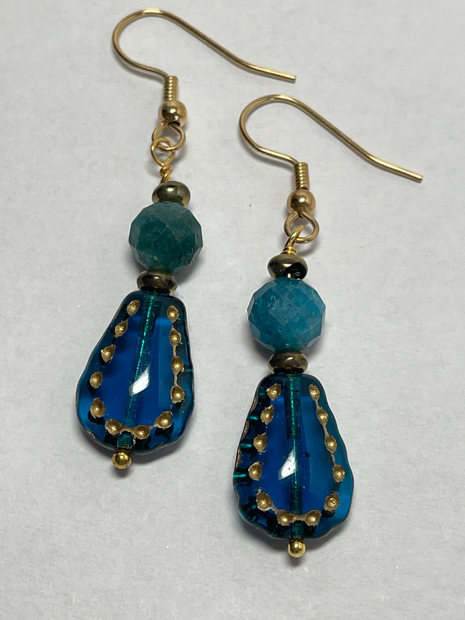 5cm in length features Czech Glass Lacy Drop, Capri Gold topped with an 8mm faceted Apetite round and finished with a gold plated ear wire