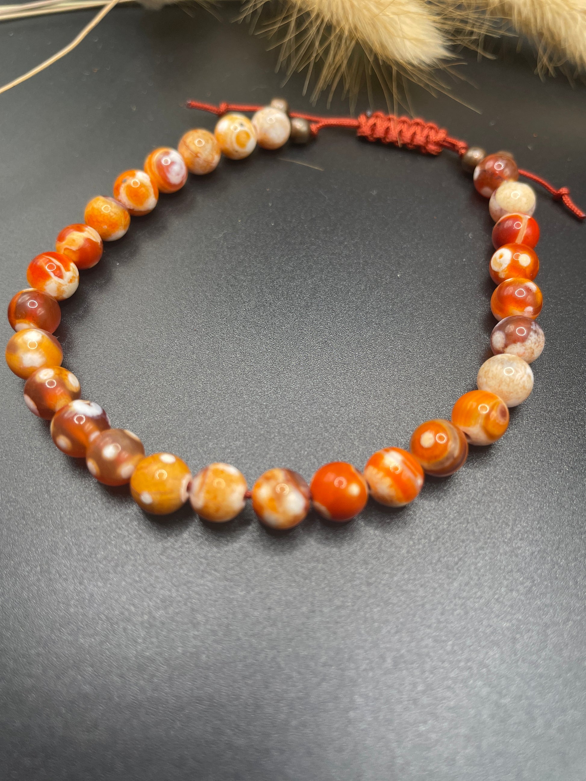 Add a pop of color and charm to your wrist with our Dotted Red Agate Cord Bracelet! The 6.3mm red agate beads, held together by a durable 2mm cord, are complemented by 6mm metal beads. Plus, it's adjustable for a perfect fit! A playful addition to any outfit!