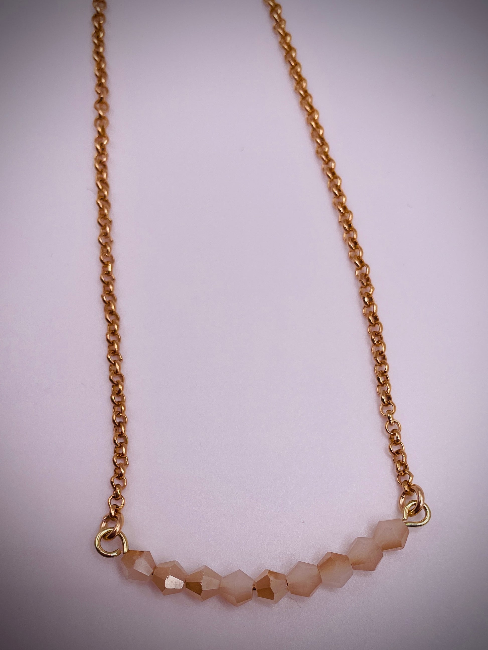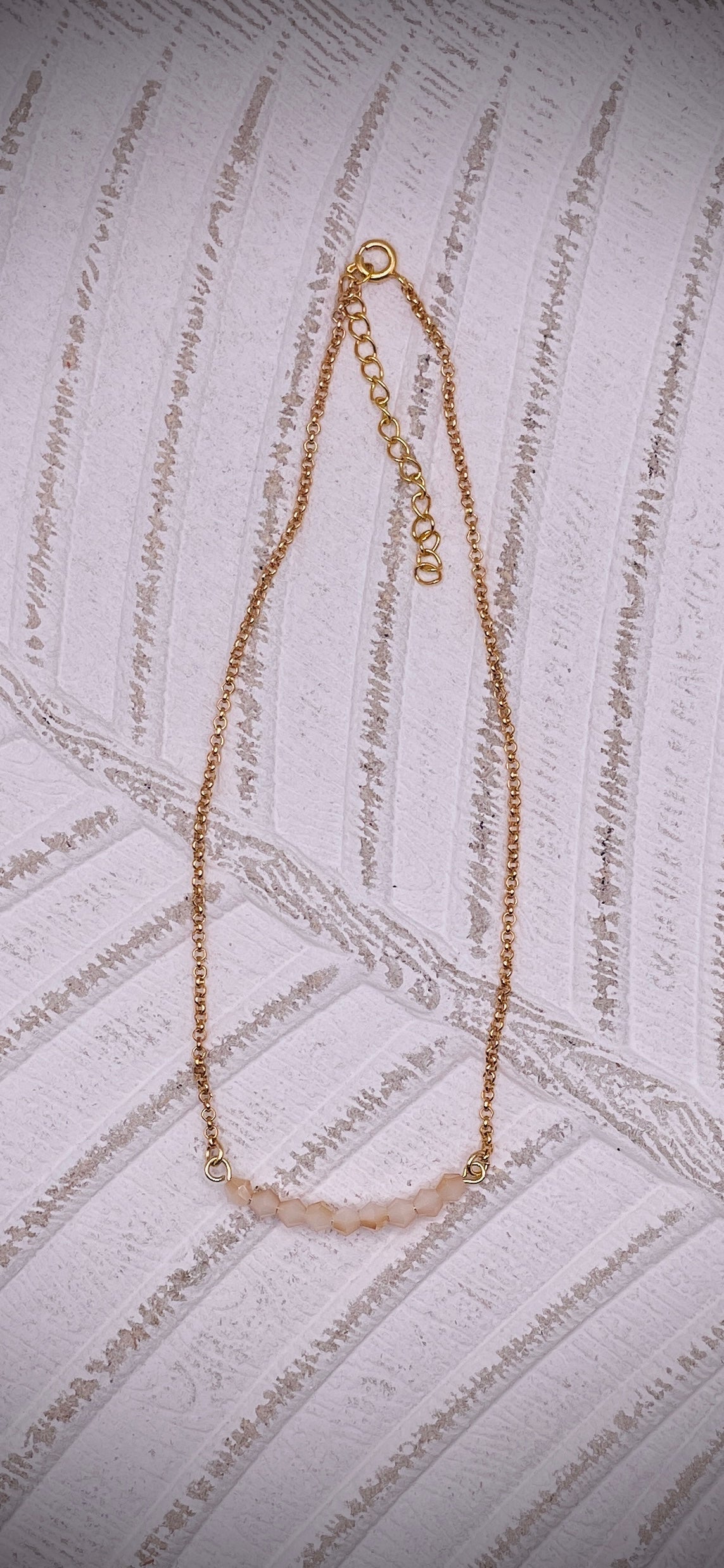 Elevate your style with our Ivory Champagne Choker! This stunning piece features a secure clasp, delicate chain, and sparkling 4mm ivory champagne faceted bicone beads. Add a touch of luxury and sophistication to any outfit and make a statement with this must-have accessory.