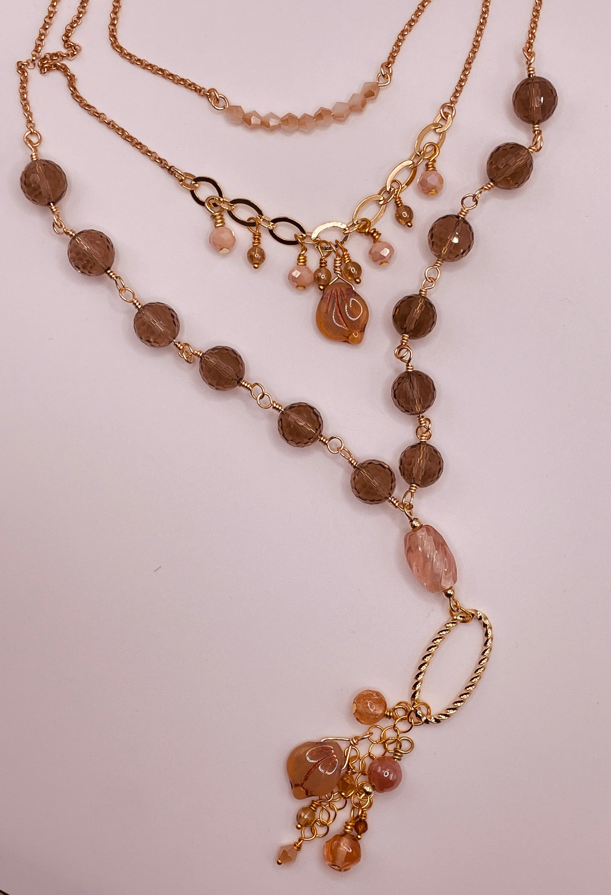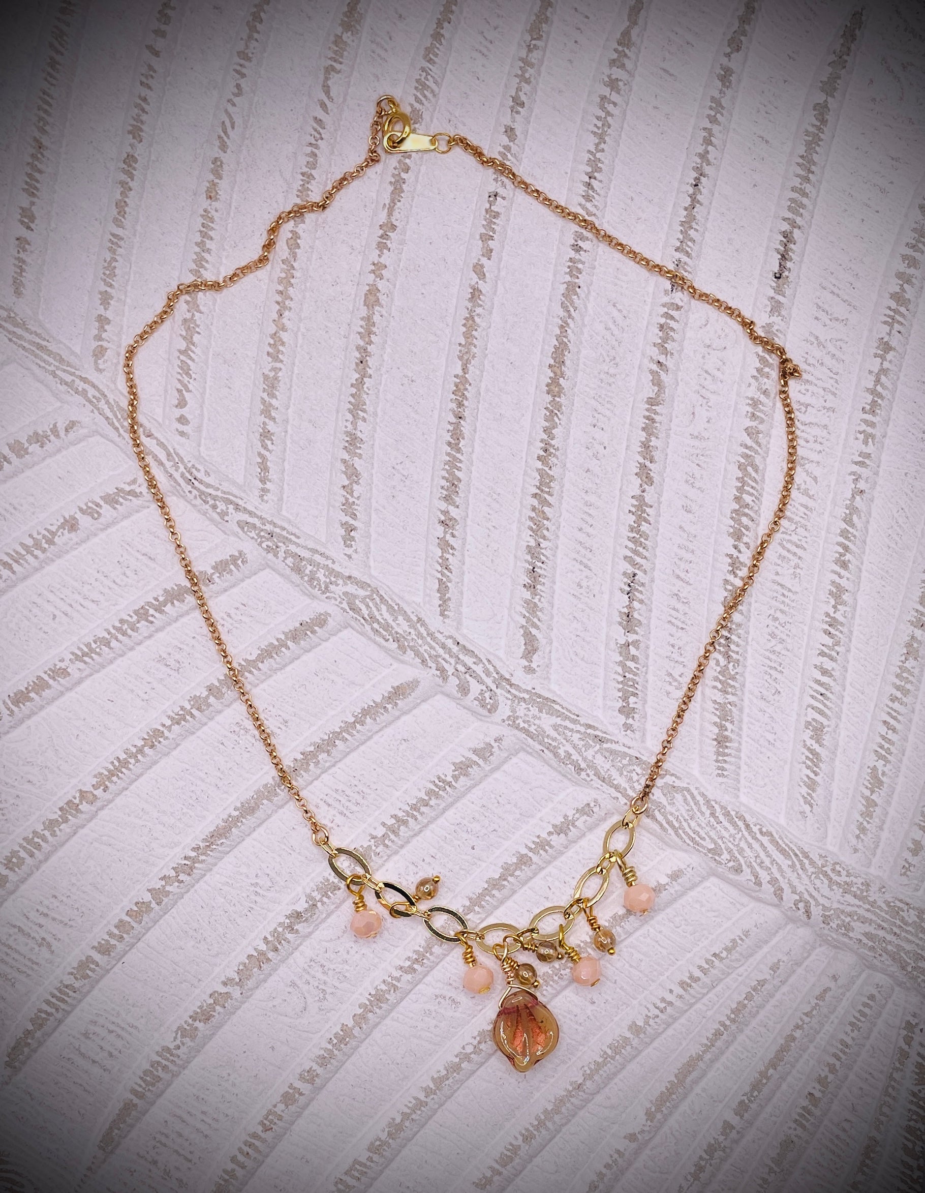 Experience elegance and beauty with our Pretty Drops Necklace. Adorned with delicate Czech Glass Petal Leaf, Rondelle and sparkling topaz druk, this necklace is the perfect accessory for any occasion. Complete with a secure chain clasp, it will add a touch of sophistication to any look. Elevate your style today!