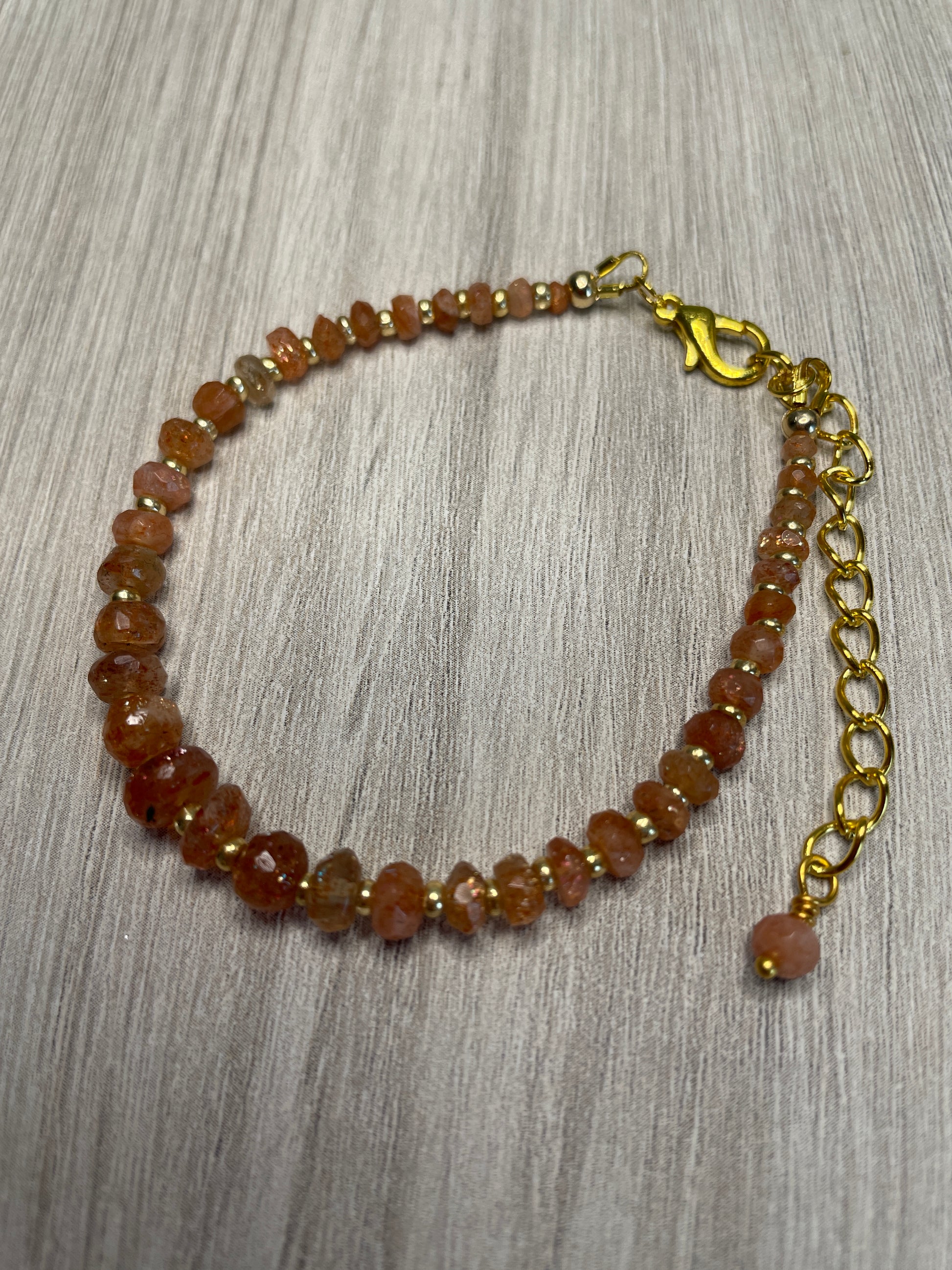 Introducing our Sunstone Faceted bracelet, a radiant piece of jewelry that'll make you shine brighter than the sun. Perfectly accessorize your unique style with this stunning gem.