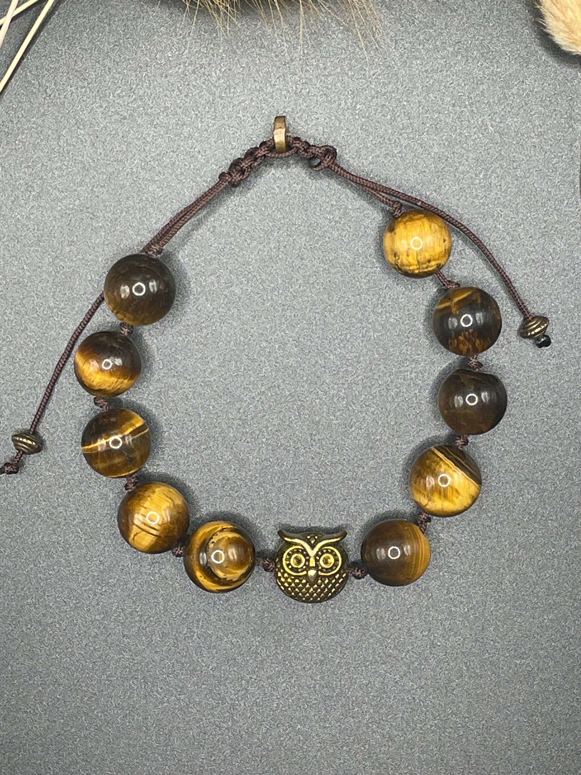 Unleash your wild side with our Tiger Eye & The Owl Bracelet. The stunning 10mm tigereye beads bring courage and confidence, while the owl charm symbolizes wisdom and protection. The adjustable cord ensures a perfect fit for anyone. A must-have for any free spirit!